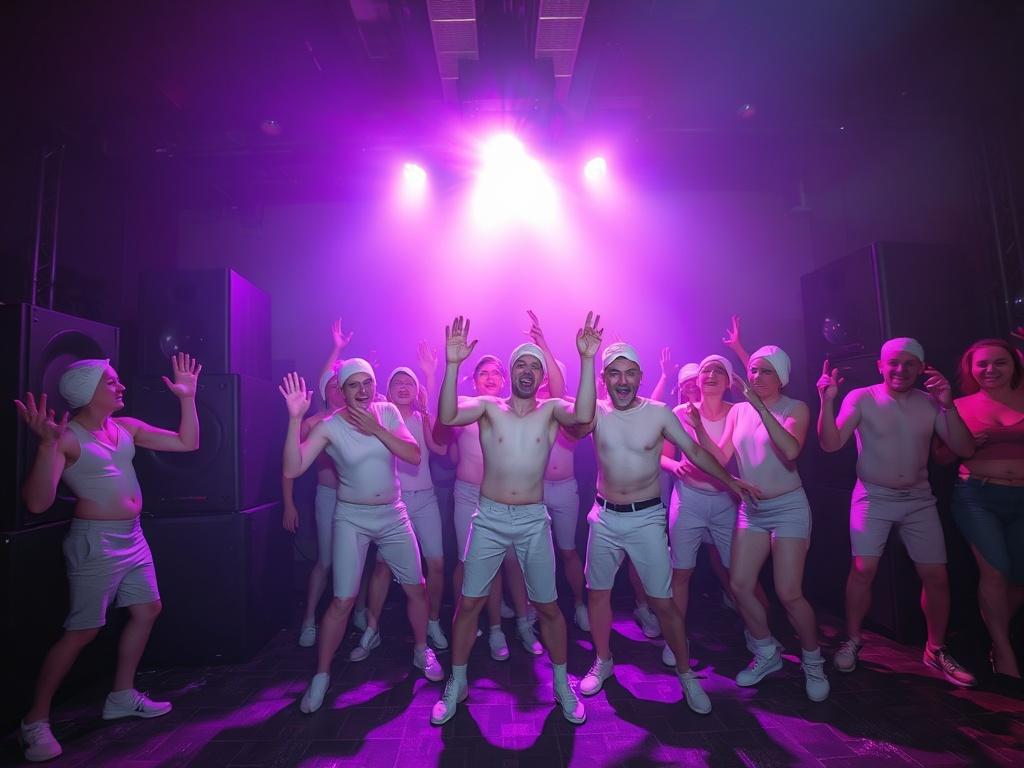 Gruppo di amici, luci da club, casse che pompano sub-bass. Improvvisamente parte la standing ovation clonata: mani che battono come se seguissero una partitura segreta scritta da qualcuno chiamato "Beat Internazionale". Cringe? Forse. Epico? Assolutamente per il feed.