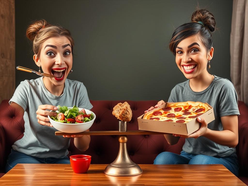 Posta nos stories com rosto dramático, marca o amigo que só come saladinha de mentira e joga a pizza pro outro lado. Hashtags tipo #vidaadulta #pizzalover ajudam.