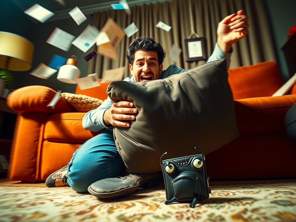 Turn your panic into content: dramatic slow-mo cushion dives, a fake missing person flyer for your debit card, or a reenactment with dramatic music.