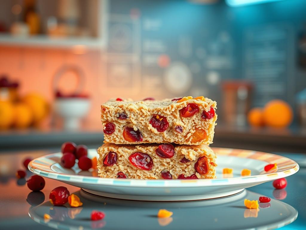 Zesty citrus oil — candied orange peel or a micro‑distilled orange essence — threads each slab with bright, electrified warmth. Tangy cran fragments (dehydrated or reconstituted, depending on your pantry‑AI's provenance choices) lace the batter with tart counterpoints that snap against the sweet, caramel‑like notes from browned plant fats. The result is a three‑act flavor arc: vibrant orange top notes, a mellow nutty midpalate, and a persistent cranberry tang that calls you back for another pixel of indulgence.