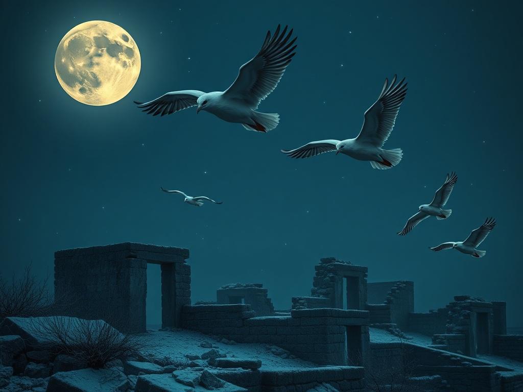 Cruzan las ruinas del cielo desolado,