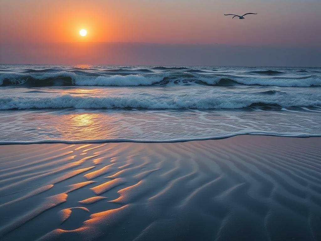 con olas que besan la orilla fugaz,