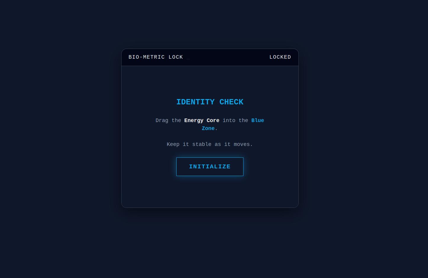 An interactive, mobile-ready CAPTCHA that verifies humans through real-time drag-and-drop control on a dynamic canvas. Users stabilize an “Energy Core” in a moving target zone, while the system measures precision, reaction time, and adaptive movements. Why It Works: Dynamic Target Movement: Randomized jumps prevent precomputed paths. Human-Like Variability: Rewards natural hand-eye coordination; robotic precision fails. Latency & Precision Checks: Detects non-human reaction patterns. Honeypot Trap: Invisible elements catch automated scripts. Visual Noise & Feedback: Animated canvas adds unpredictability for AI. Credits: Generated with Gemini 3 Pro