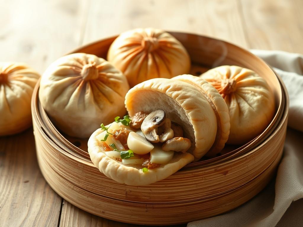 Le bánh bao est une brioche vapeur d'origine vietnamienne, moelleuse et légèrement sucrée, généralement garnie de porc haché, de champignons et parfois d'un œuf de caille. Cette recette explique comment préparer la pâte, la garniture classique et la cuisson à la vapeur pour obtenir des bun bien gonflés et savoureux.