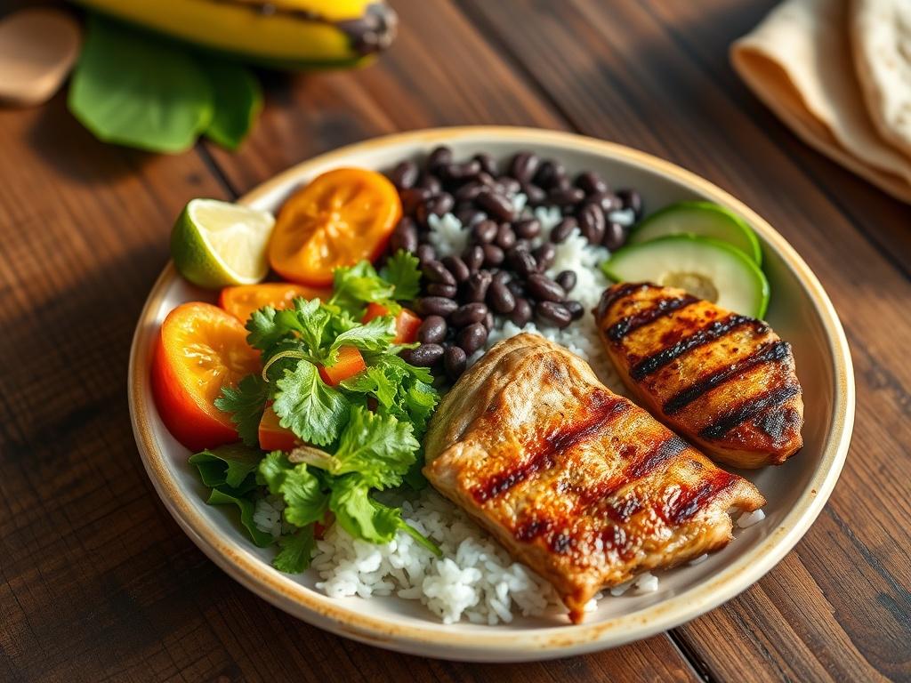 Plate a generous scoop of rice, a portion of beans beside it, the protein of choice, a few slices of fried plantain and a helping of fresh salad. Add warm tortillas or a slice of avocado on the side. Traditional presentation places each element separately so diners enjoy every flavor in combination.