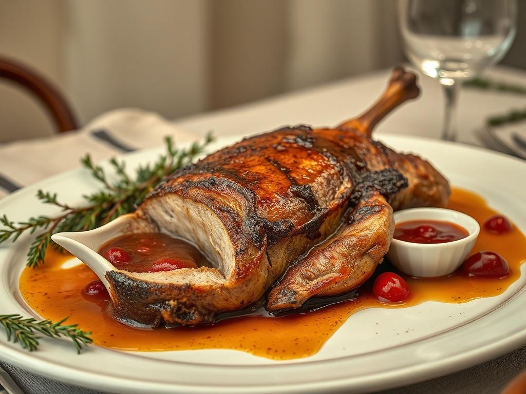 Une dinde rôtie dorée accompagnée d'une sauce aux canneberges maison est le plat parfait pour les repas de fête. Cette recette propose une cuisson simple et des astuces pour obtenir une peau croustillante et une chair juteuse, ainsi qu'une sauce aux canneberges équilibrée entre acidité et douceur.