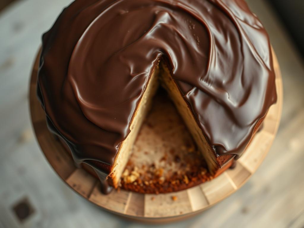 Una vez que el pastel esté ligeramente enfriado, vierte el glaseado caliente sobre él mientras aún está tibio. Extiende uniformemente con una espátula. Deja que el glaseado se asiente antes de cortar y servir. ¡El aroma que llenará tu cocina es simplemente irresistible!