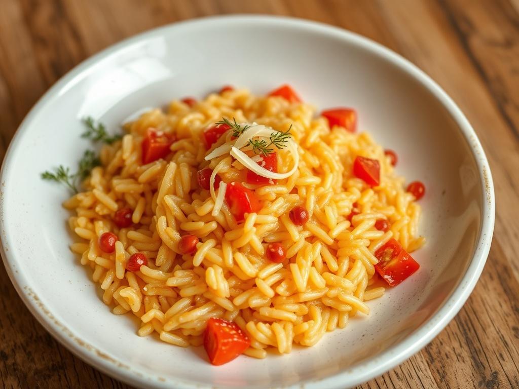 - Używaj dobrej jakości ryżu (arborio lub carnaroli) — to klucz do kremowej konsystencji z zachowaniem struktury ziaren.