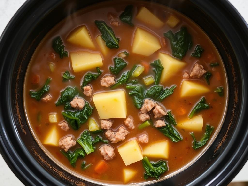 Sopa Reconfortante de Salchicha, Col Kale y Papa en Olla de Cocción Lenta