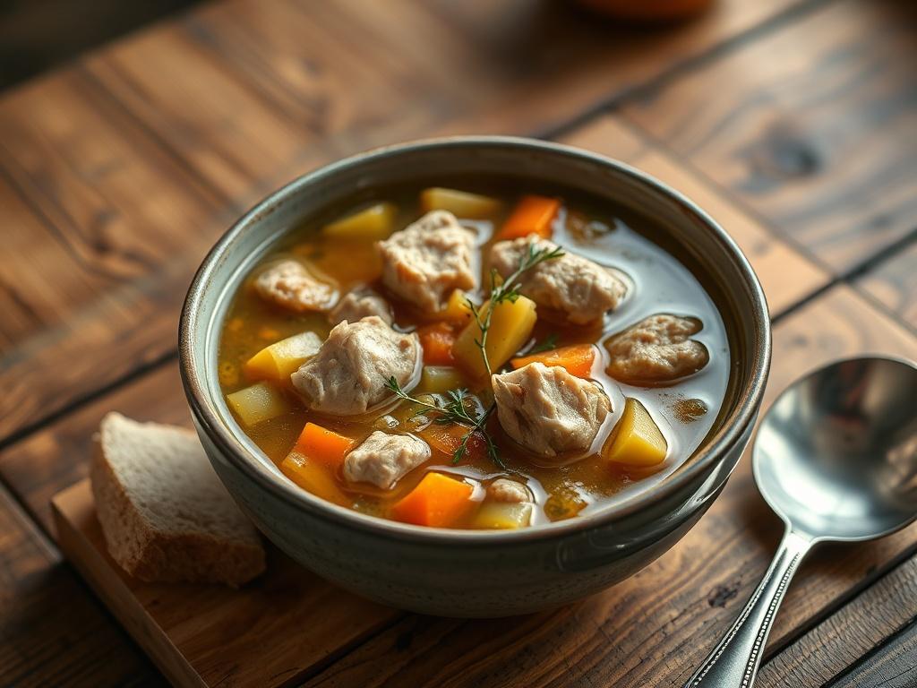 Une soupe réconfortante et facile à préparer, parfaite pour les journées froides ou quand on a besoin d'un plat maison simple. Cette soupe de poulet aux nouilles combine un bouillon parfumé, des légumes fondants et des nouilles délicates pour un résultat savoureux et nourrissant.