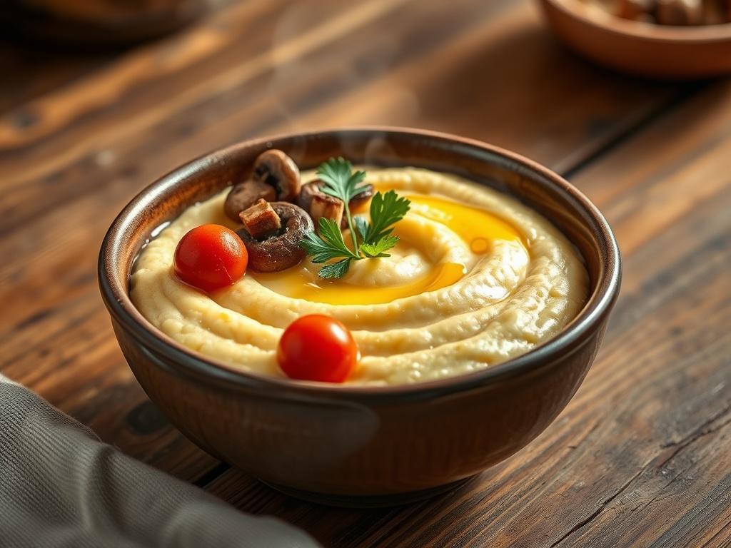 - Tomato polenta: Stir in 1/2 cup cooked tomato sauce and simmer 2–3 minutes for a bright, saucy version.