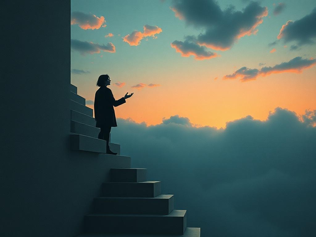 Il frammento che apre la storia è semplice: una scala che sale verso un cielo di carta, ogni gradino decorato con parole che scompaiono se le guardi troppo a lungo. È un'immagine sospesa tra il familiare e il surreale, dove il tempo si piega e i ricordi assumono consistenza. Nel racconto questo frammento diventa la molla che muove il protagonista, un richiamo che non lo lascia quieto né di giorno né di notte.