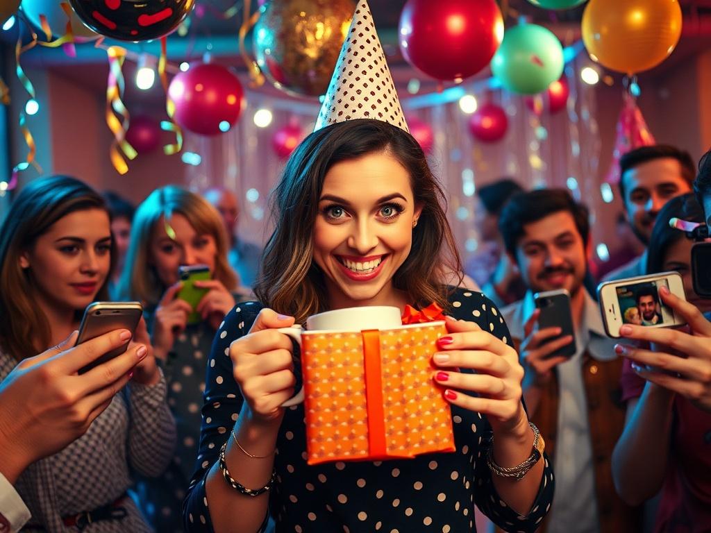 Exprimer un enthousiasme calibré : "Oh waouh, j'adore..." suivi d'un plan serré sur ton sourire fake. Filmer l'unboxing, mettre un filtre chaleureux, taguer la personne — pour la vanité et le karma. GG.