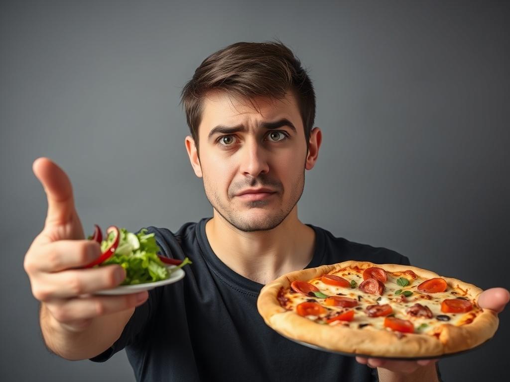 Es como si tu cerebro y tu estómago estuvieran en dos equipos diferentes. Tu cerebro grita: "¡Tenemos que ser saludables!" mientras tu estómago responde: "¡Pero esta hamburguesa me está llamando por nombre!"