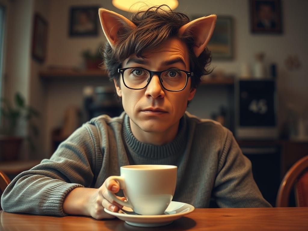 Dietro allo schermo: tazza di caffè fredda, capelli in modalità disastro, e la luce del frigorifero. Sullo schermo: pelle di porcellana e occhi da influencer. Relatable AF.