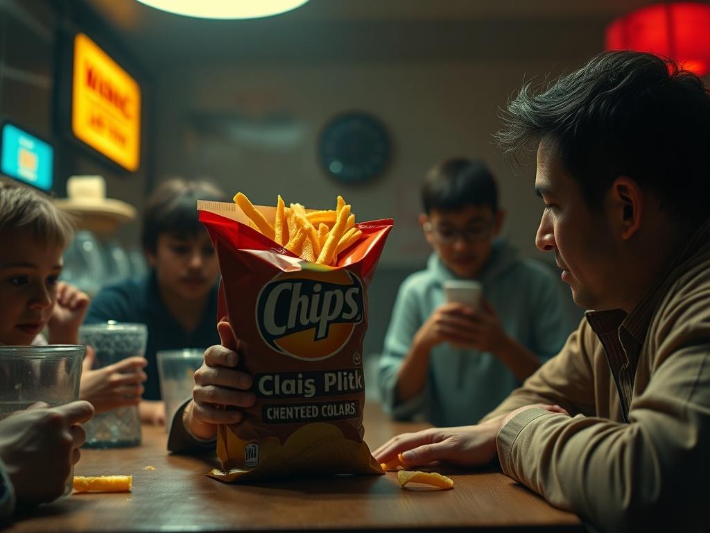 Dodaj ironiczny opis, emoji (🍟😏), taguj złodziei snacków. Krótkie linie, mocny punchline — reszta pójdzie sama. Udostępniaj bez litości.