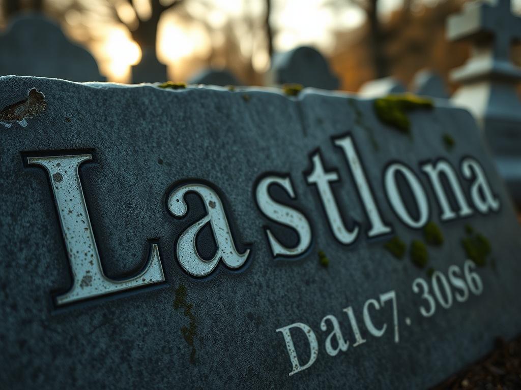 Im Stein gestochen Namen leben fort, trotz Stille, Zeit und Flur,