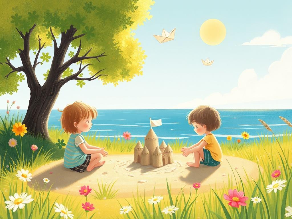 Castillos de arena en la orilla,