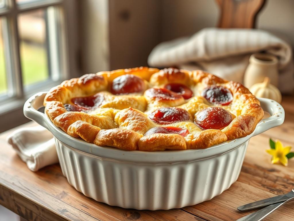 Den Cobbler 10–15 Minuten etwas abkühlen lassen, damit die Füllung leicht gesetzt ist. Warm servieren, z. B. mit Vanilleeis oder einem Klecks Schlagsahne.