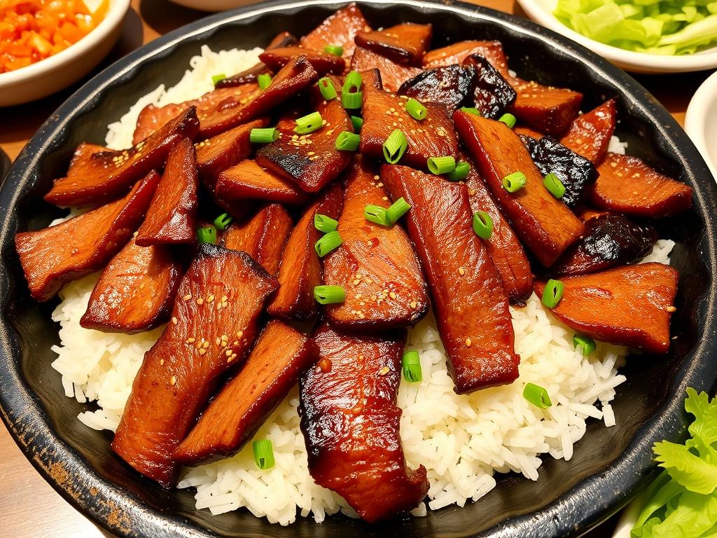 Podawaj bulgogi z ryżem, świeżą sałatą lub w liściach sałaty jako wraps. Możesz posypać pokrojoną zieloną cebulką dla dodatkowego smaku.