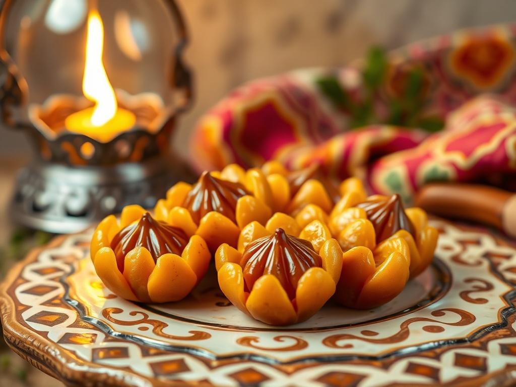 Chebakia (auch Shebakia) ist ein traditionelles marokkanisches Gebäck: knusprig frittiert, in Honig getaucht und mit Sesam bestreut. Es wird besonders während des Ramadan und zu festlichen Anlässen serviert. Die typische Blütenform und die Honigglasur machen Chebakia zu einer süßen Spezialität mit intensivem Aroma von Orangenblütenwasser, Anis und Zimt.