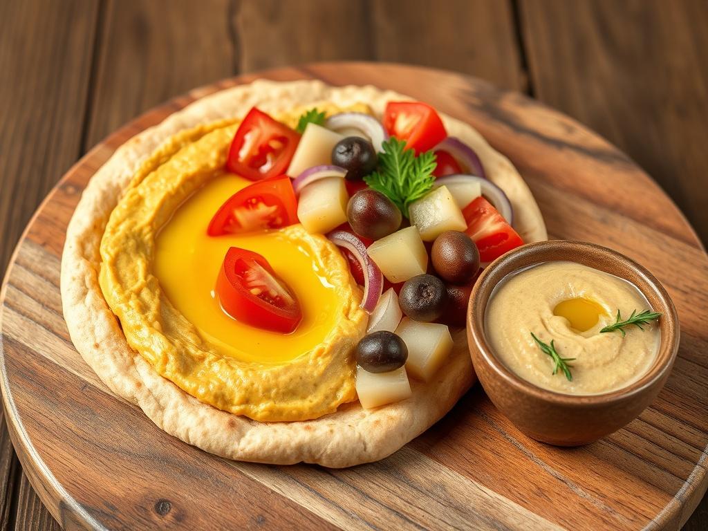 La pita vegetariana con hummus es una opción deliciosa, saludable y satisfactoria perfecta para el almuerzo, la cena o como aperitivo. Este plato combina el suave y cremoso hummus casero con una variedad de vegetales frescos y crujientes, todo envuelto en un pan pita suave y esponjoso.