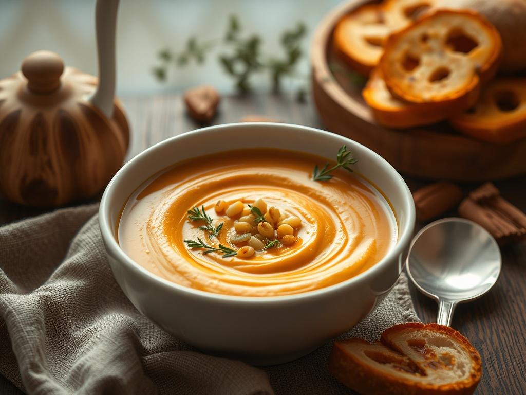 La soupe à la courge butternut végane est une recette réconfortante parfaite pour les jours frais d'automne. Avec sa texture crémeuse et sa saveur douce naturelle, cette soupe ne contient aucun produit d'origine animale tout en étant incroyablement savoureuse et nutritive.