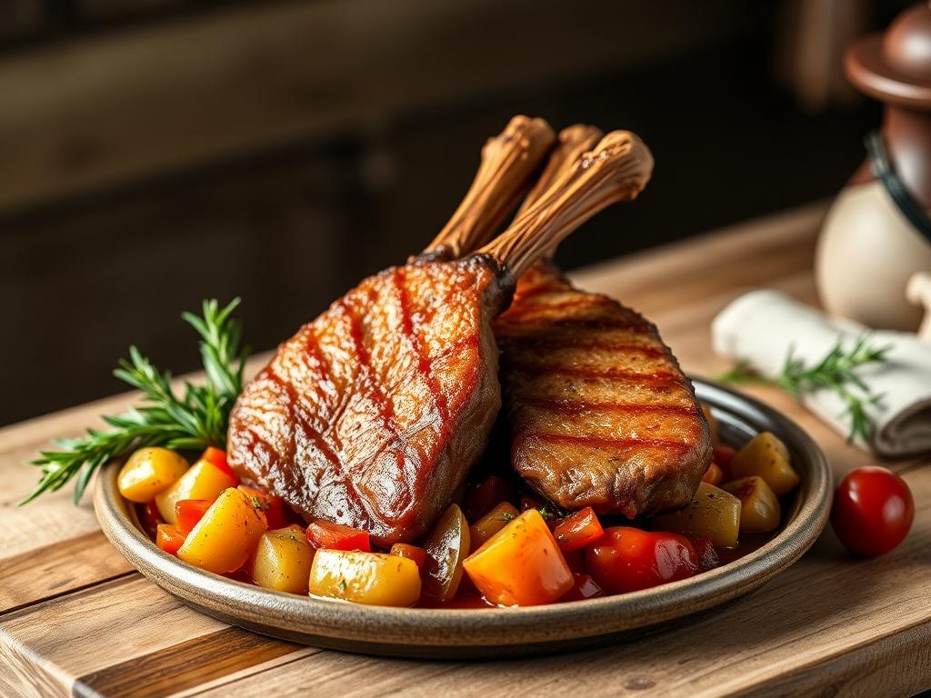 11. Servire gli stinchi con una generosa cucchiaiata di salsa e le verdure arrostite a lato. Completare con prezzemolo tritato o una leggera grattugiata di scorza di limone per freschezza.