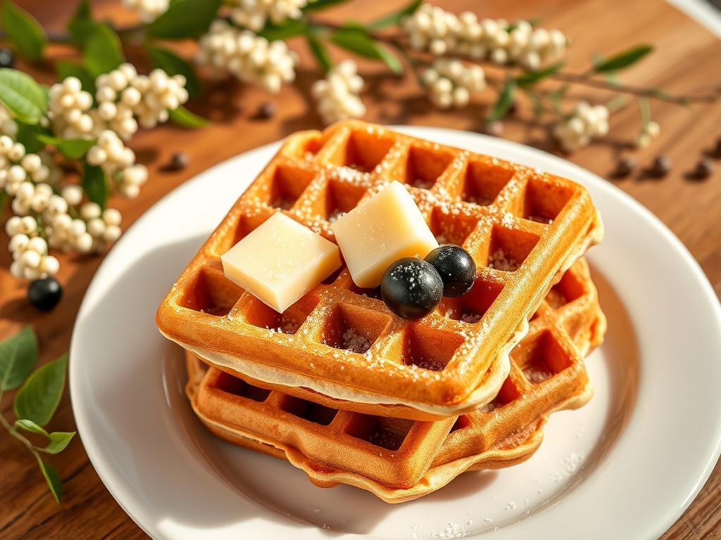 - Waffle al cacao: aggiungi 20–30 g di cacao amaro setacciato agli ingredienti secchi per una versione cioccolatosa.